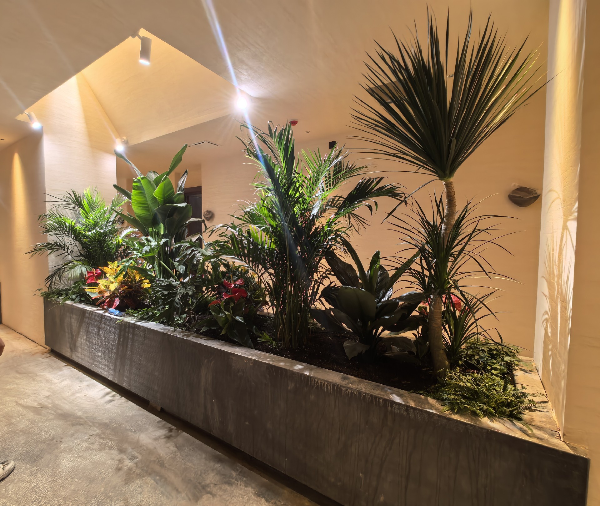 2025年5月14日,西安碧盛園藝團(tuán)隊(duì)滿懷熱枕,奔赴西安市高新區(qū)樸院里酒店,為樸院里酒店室內(nèi)外綠植綠化進(jìn)行設(shè)計(jì),成功安裝了1個(gè)智能化噴灌裝置,能夠確保每一株植物在不同的氣候條件下都能茁壯成長。同時(shí),佛甲草鋪種40平方米,栽種荷花12個(gè),設(shè)計(jì)花池1個(gè)等一系列工作,為酒店?duì)I造出一片清新自然的綠色景觀。
